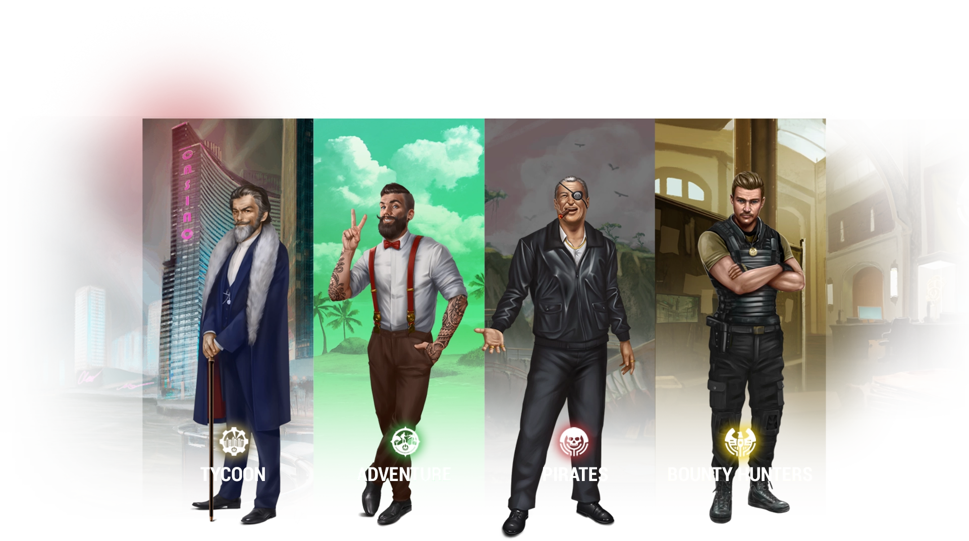 Choose between two strategies: Tycoons generate income from a business while Adventurers strive to be highly-skilled professionals. Two sub-factions (Pirates & Bounty Hunters) add a PvP element involving stealing and recovering loot.